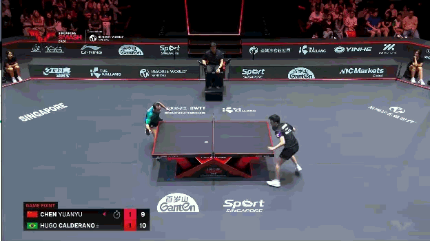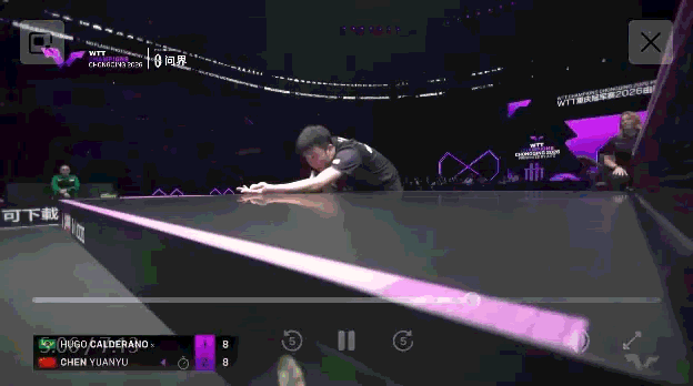 第四个,雨果给陈垣宇正手实际有点小三角出台,陈垣宇正手推然后侧身两条直线。