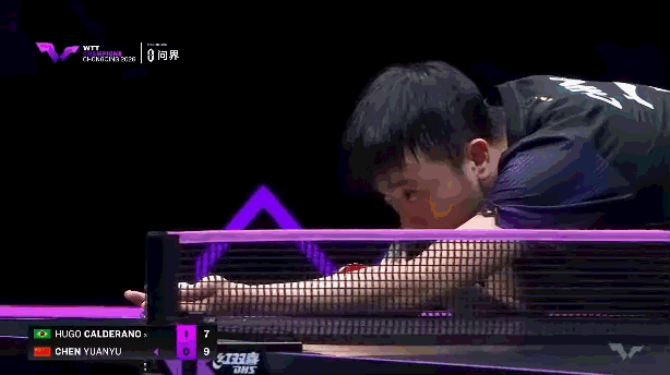 第一分,他给了一个正好侧边的半出台,这球雨果一点质量给出不出来,只能勾一下,陈垣宇摁了一个直线。习惯上这个球斜线多,这是他一个套路。