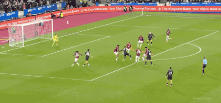 第5分钟,努里在左路上演精彩的过人秀,西汉姆联球员前仆后继,完成拦截。
