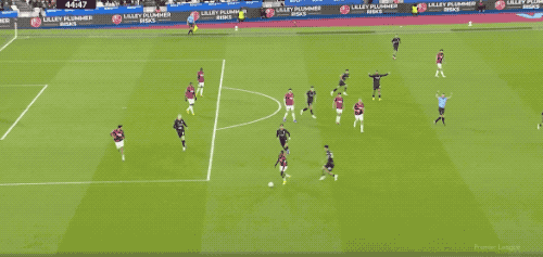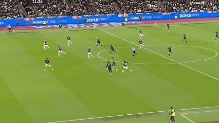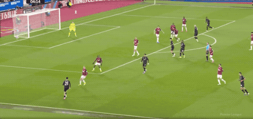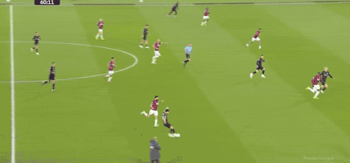 第5分钟,努里在左路上演精彩的过人秀,西汉姆联球员前仆后继,完成拦截。